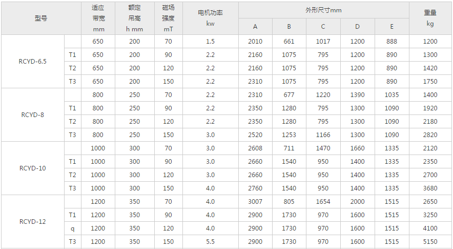 RCYD型自卸式除鐵機與RCYC系列型號等同,適用于各行業輸送帶輸料除鐵。可實現連續不斷的吸棄鐵。皮帶具有自動糾偏功能,運行可靠、維護簡單。其內部磁路采用完善的磁結構,保障整機在惡劣環境中無故障長期運行。擁有防爆型和鎧裝型。